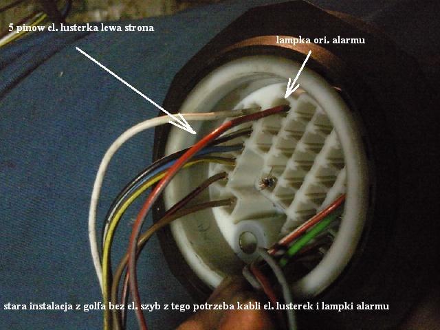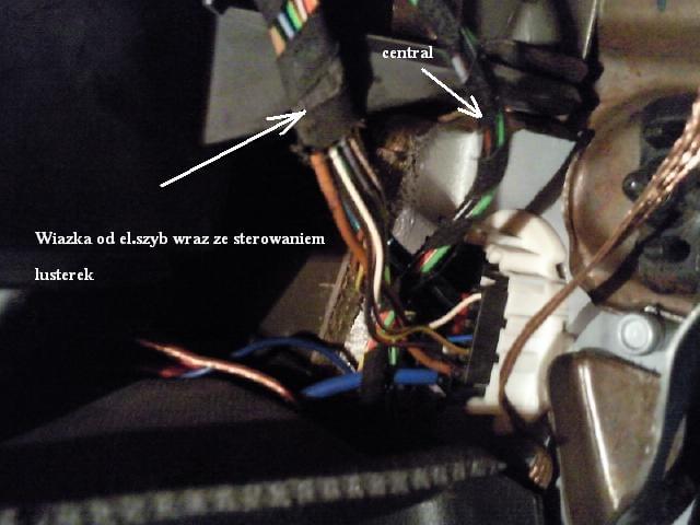 wyodrebniony kabelek zasilania el. lusterek ktory juz jest nam niepotrzebny bo w nowej wiazce byl juz dolaczony taki.