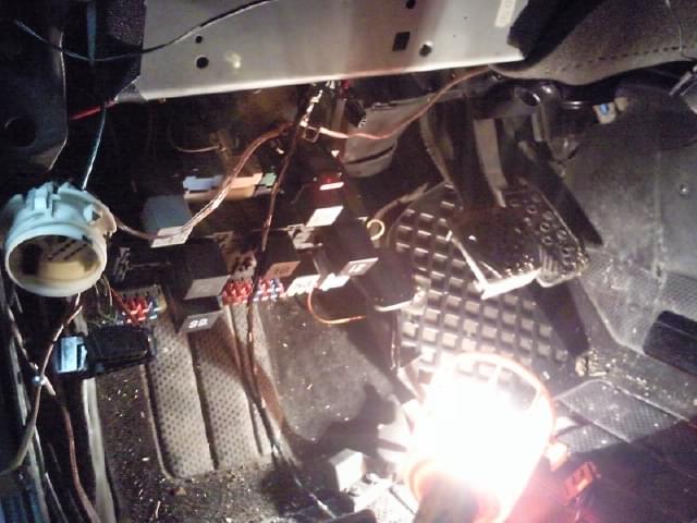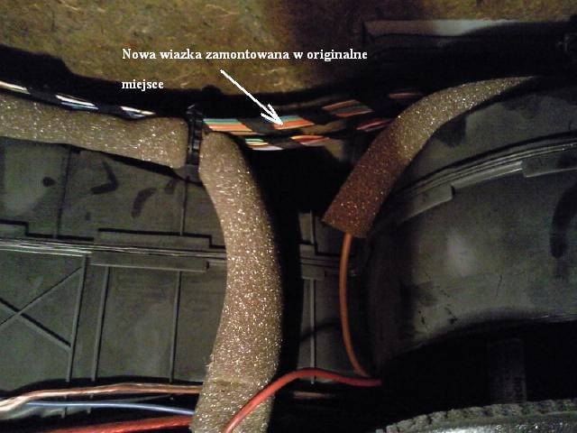 nastepnie wiazka zostaje przeciagnieta na lewa strone do skrzynki bespiecznikow i podlaczona w tych samych miejscach co poprzednia, chodzi o el. lusterka