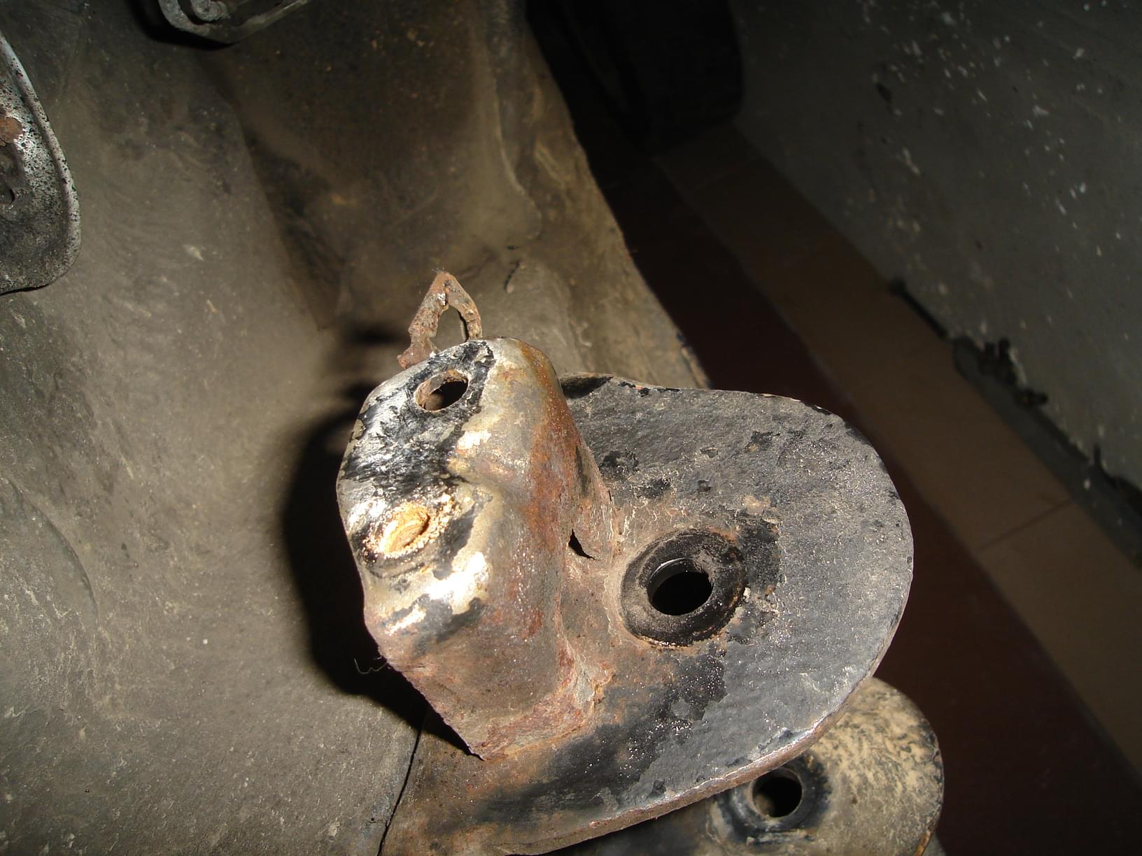 Jeżeli tuleja już siedzi na miejscu to smarujemy środek tulei i śrubę i zakładamy belkę. Tu potrzebujemy drugiej osoby do pomocy, wkładamy jedną stronę a drugą musimy podważyć breszką. Lekko zakręcamy belkę, i skręcamy wszystko w odwrotnej kolejności. Ja kupiłem korektor i utrąciłem te dwie wspawane nakrętki w mocowanie i za pomocą długiej śruby skręciłem go, żeby przy następnym odkręceniu nie bawić się z tym. Przeglądnijcie przewody hamulcowe czy nie są skorodowane, ja musiałem wymienić 2, bo taka rzecz to nie przelewki, przy okazji wyczyściłem belkę i zakonserwowałem ją bo strasznie rudy ją zjadał, wymieniłem też odboje amortyzatora bo juz stukało jak ktoś siadł z tyłu. Skręcamy wszystko i odpowietrzamy hamulce przód i tył. Zakładamy koła i stawiamy auto na nich. Teraz dokręcamy śruby belki W przeciwnym wypadku za nie długo będziemy musieli robić to samo jeszcze raz. Dlaczego? Belka najczęściej jest w takim położeniu jak stoi auto i pracuje od tego położenia w górę i lekko w dół. Jeżeli dokręcimy ją w momencie kiedy belka jest na dole zaraz po jej zamontowaniu tuleje bardzo szybko się wyrobią.