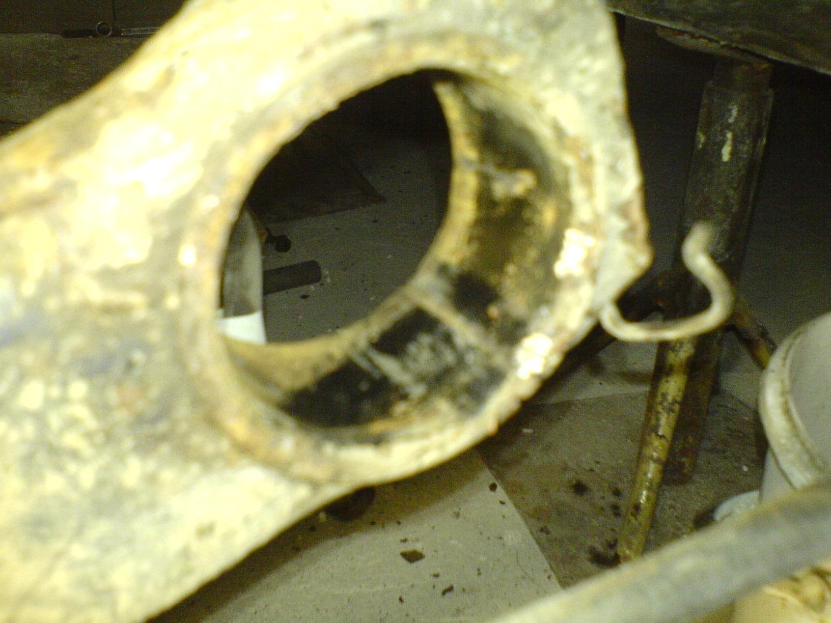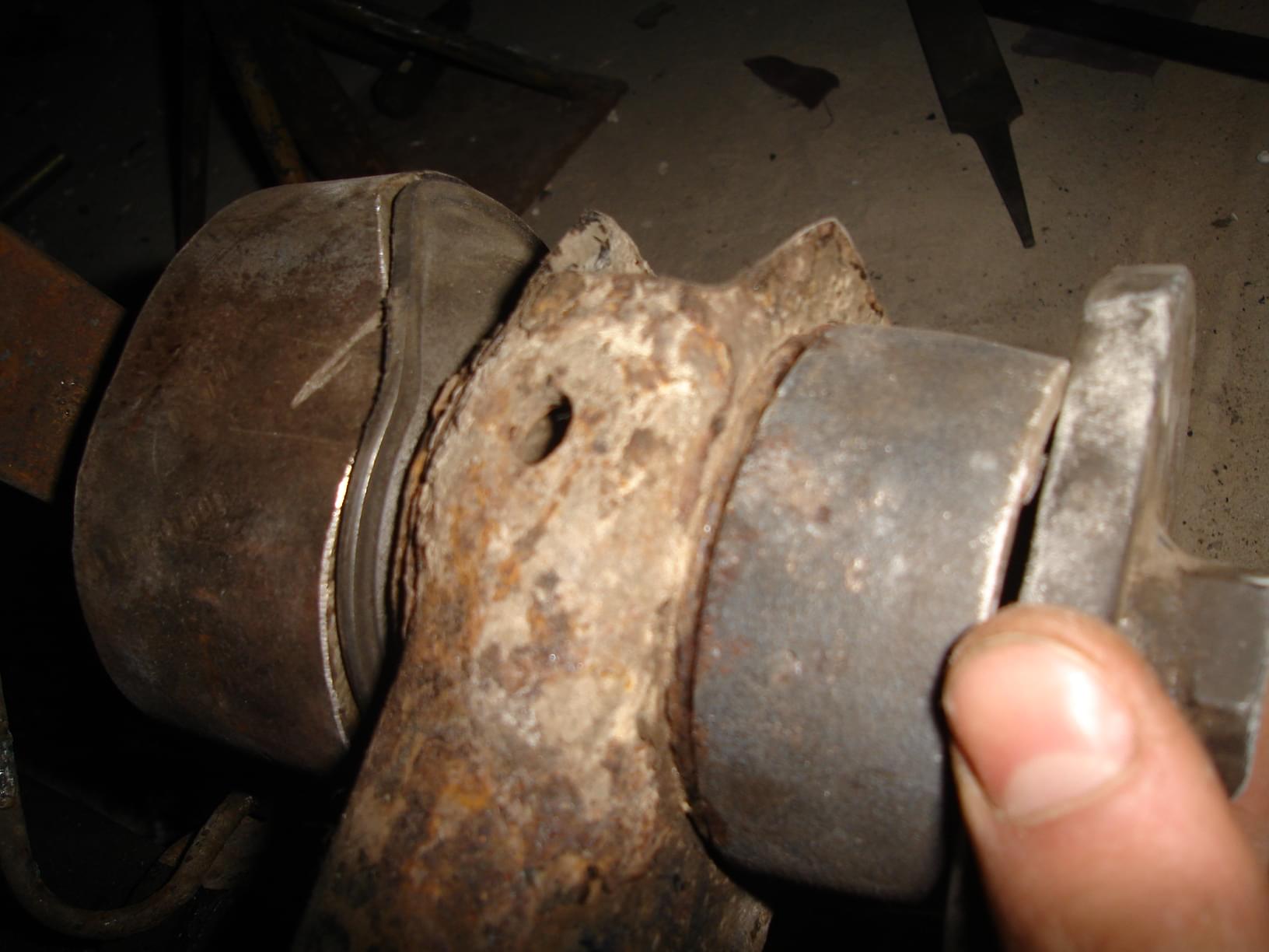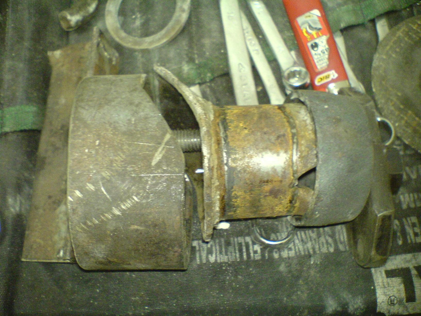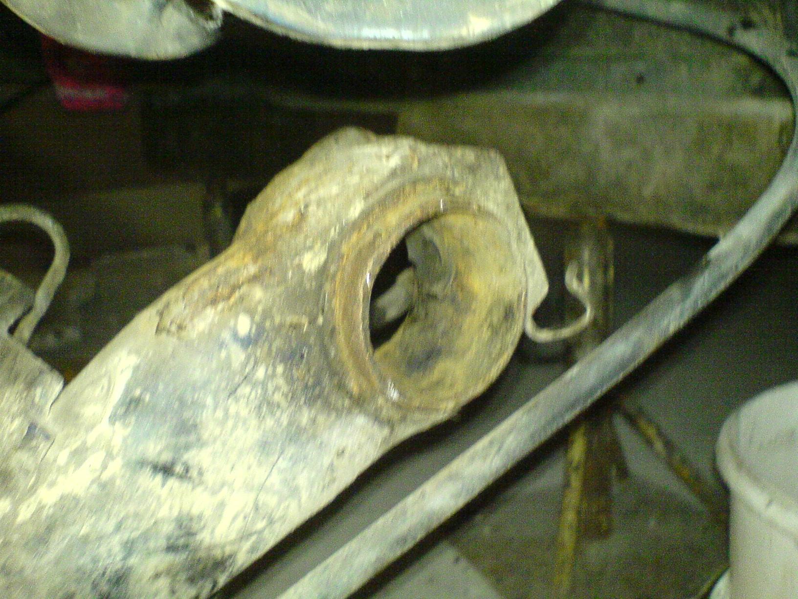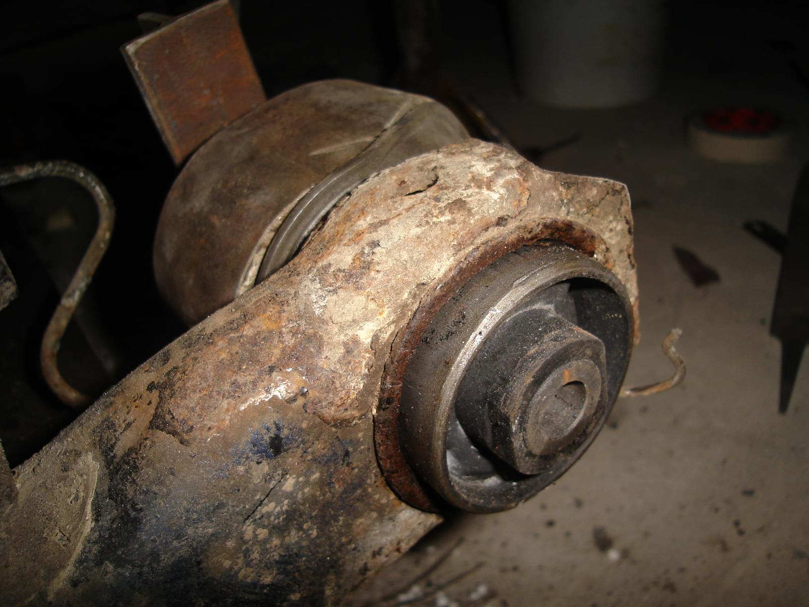 Podpieramy całą belkę i bierzemy się za wyciągnięcie starych tulei. Ja wybiłem młotkiem stare gumy i została tylko metalowa osłona całości. Następnie rozcinamy najlepiej w dwóch miejscach tuleje i wybijamy ją. Ważne Zapamiętajmy położenie starej tulei tj. Wystawanie i położenie w gnieździe.