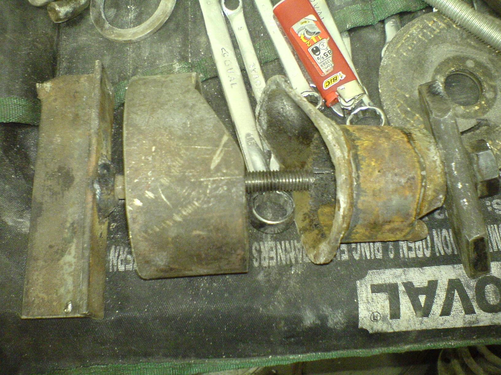 Po wyciągnięciu bierzemy pilniczek lub papier ścierny i szlifujemy wszystkie niedoskonałości powstałe w gnieździe belki w wyniku wyciągnięcia starej tulei. Smarujemy gniazdo i nową tuleje smarem i za pomocą miniprasy wciskamy tuleje. Ustawiamy ją w dobrym położeniu i za pomocą pierwszej kombinacji prasy wciskamy ją w gniazdo cały czas kontrolując, czy przypadkiem nie wchodzi krzywo.