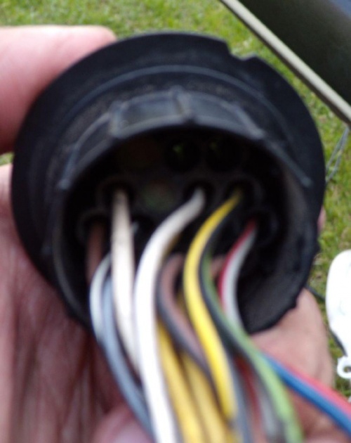 Widoczny na zdjęciu wlutowany brązowy kabel to masa, którą ja podłączyłem do zespołu masy po lewej stronie na słupku brązowe koło. Zupełnie nie musimy tego robić bo masa jest we wtyczce, przekonawszy się o tym odlutowałem ten kabel ale można zostawić dla pewności.