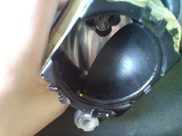 - otwieramy halogen przez odkręcenie śruby od regulacji oraz poluzowanie tych 2 zatrzasków po bokach. Uważajcie by ich nie połamać!. Gdy już obudowa odejdzie od tylnej części halogenu możemy przystąpić do odklejania szkła od obudowy.