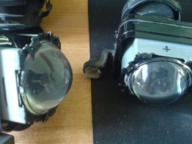 Powtórzyłem zabieg 2x i cały osad z soczewki znikł i wygląda tak jak 2ga. Pewnie jest to spowodowane tym że halogen nie był szczelny i osadził się na soczewce kamień od wody.
