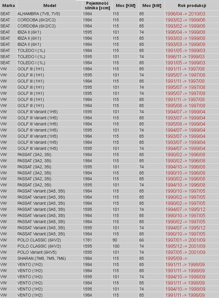 zamiennik ODMY do AFT, AEK, AGG, AEP, ADY