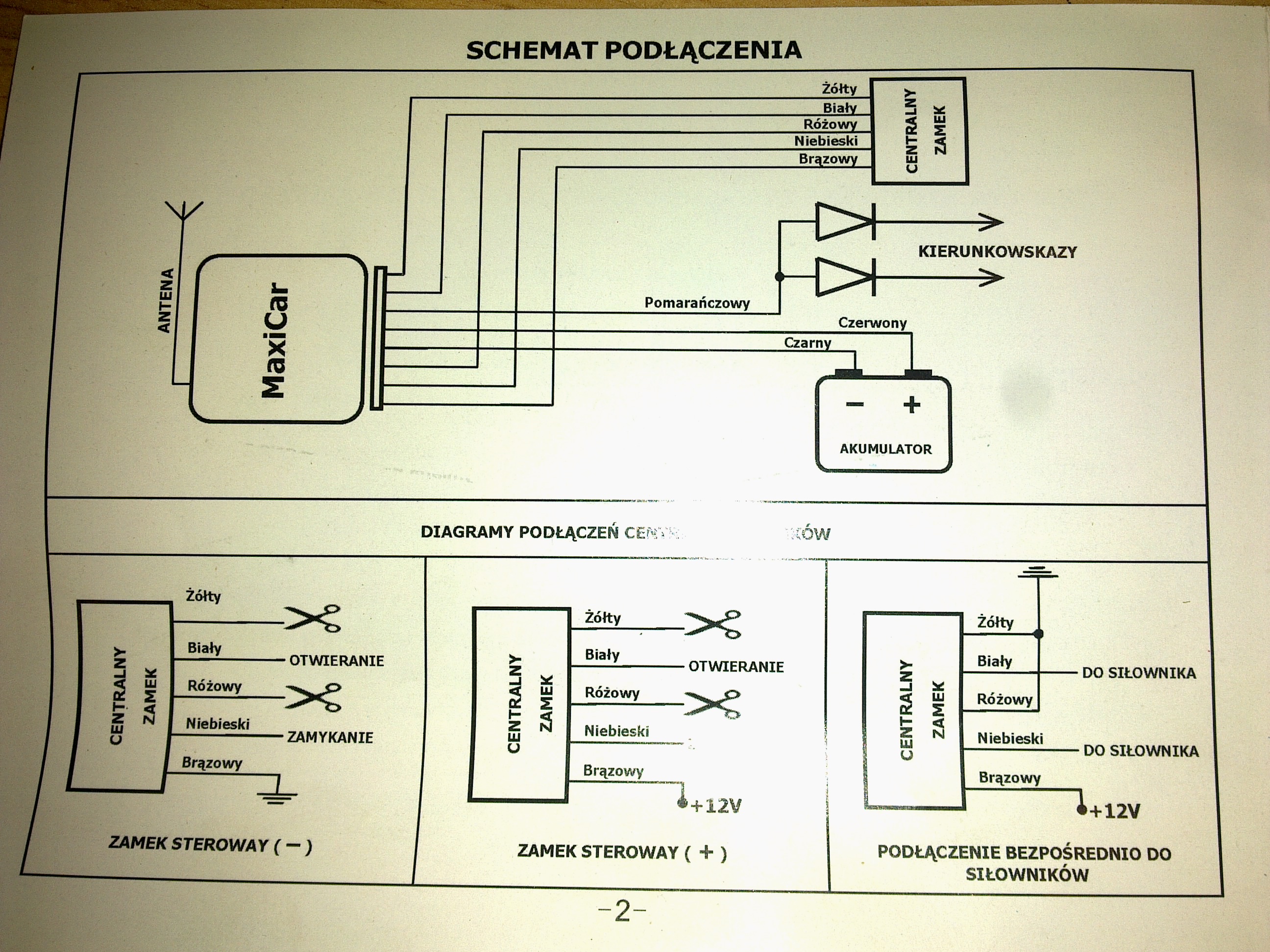 - (przewód biały) sygnał otwarcia do zielonego przewodu w wiązce drzwi