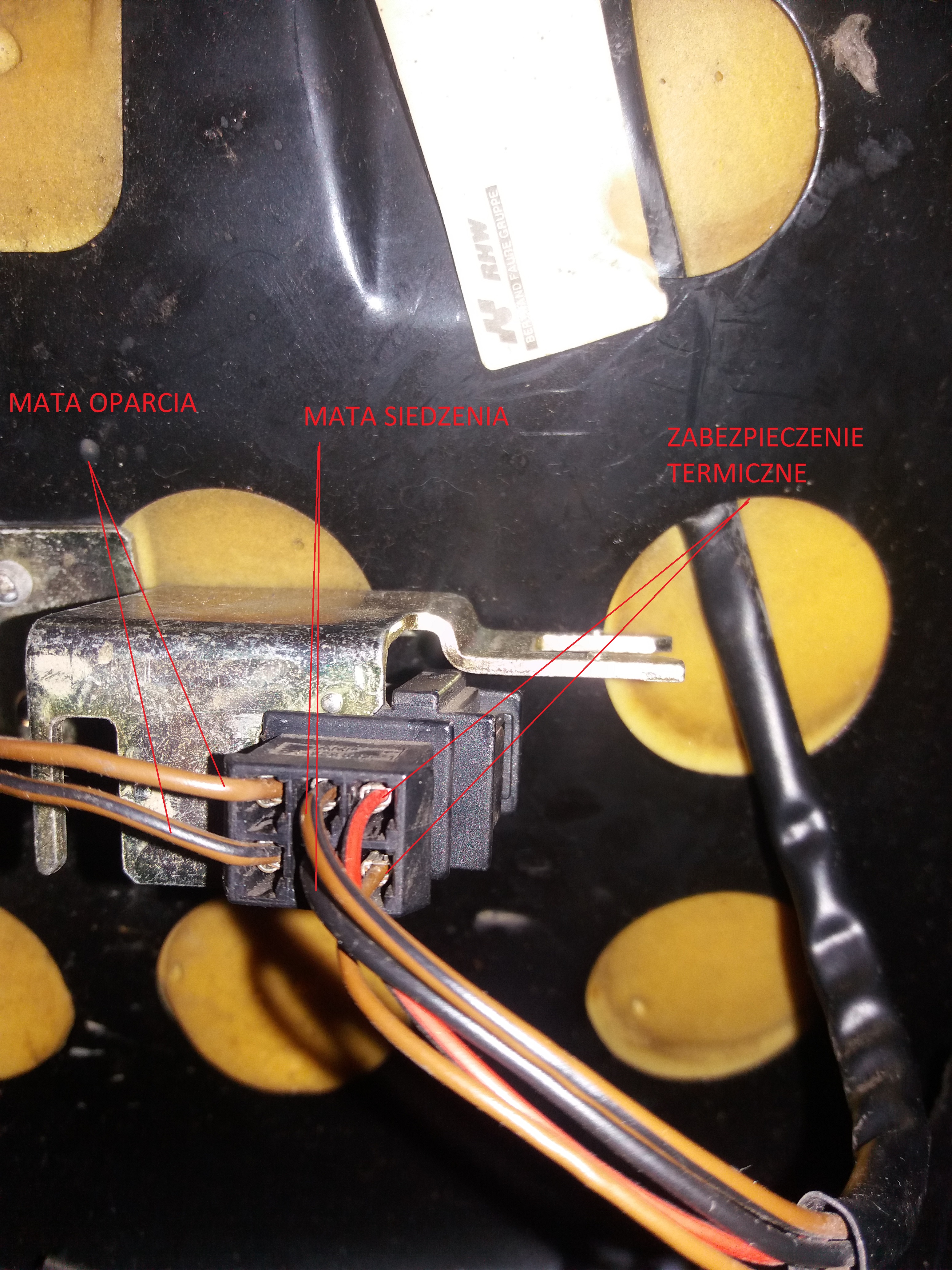 -kabel czarny / brązowo czarny - mata siedzenia ,też ma być obwód zamknięty , jeśli nie to tak jak wyżej ,