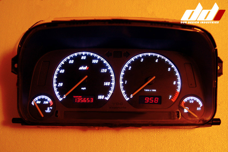 Masz na mysli tylko wyswietlacze przebiegu i godziny tak ? Taki efekt nazywa sie negatyw. Uzyskasz go odwracajac folie na wyswietlaczach oraz po wymianie diod od podswietlenia wyswietlaczy na czerwone. Na necie wklep haslo "wyswietlacze negatyw golf 3" i powinno Ci sie sporo info na temat pokazac