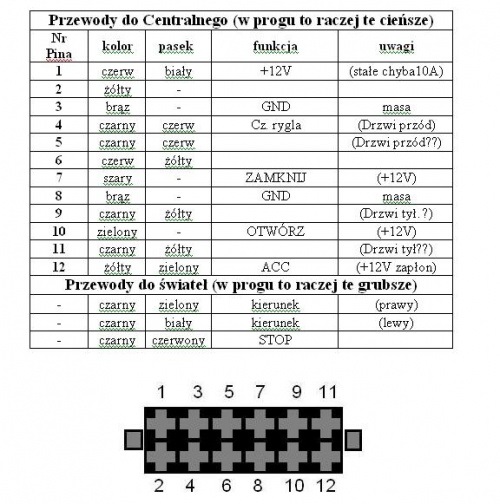 Mam Golfa 3 i mam orginalny centralny zamek pneumatyczny znajdujacy sie z tylu po prawej stronie . Centralka dziala z klucza bez zastrzezen. Kupilem sterownik MOTOKEY 500 A . Podlaczylem wszytko wedlug schematu ktory dolaczylem do zalacznika i zostaly mi dwa kable ze sterownika umnie to brazowy i zielony na schemacie jest pokazane zeby je wpiac do popki centralnego zamka tylko ze w pompce jest 12 kabelkow o roznych kolorach . Opis tych kabli z popki daje tez w zalaczniku. Moje pytanie:
