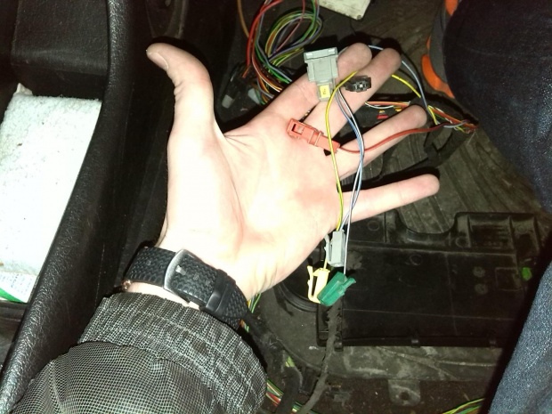 Wszystkie kostki polączone, czerwony + podpiąłem pod przekaźnik z dmuchawy żeby prąd dochodził po przekręceniu kluczyka, a brązowy do masy (blacha/zawias w słupku drzwi). No i przekręcam kluczyk, nic się nie dzieje...