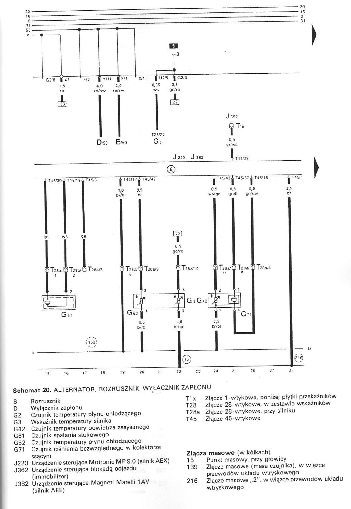 ja potrzebuje schematu do silnika 1,6 ABU i do silnika do passata B3 2.0 2E, problem polega na tym że gdzie bym tego schematu nie szukał to do 2.0 są schematy od wersji US z inną kolorystyką kabli...
