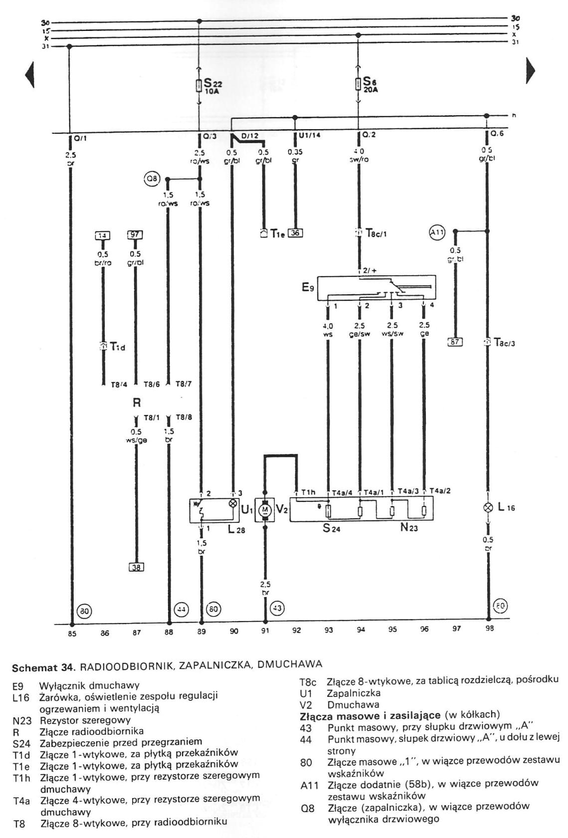 Nie widziałem schematu elektrycznych szyb więc wrzucam schemat szyb elektrycznych przednich i tylnych. Może komuś się przyda: