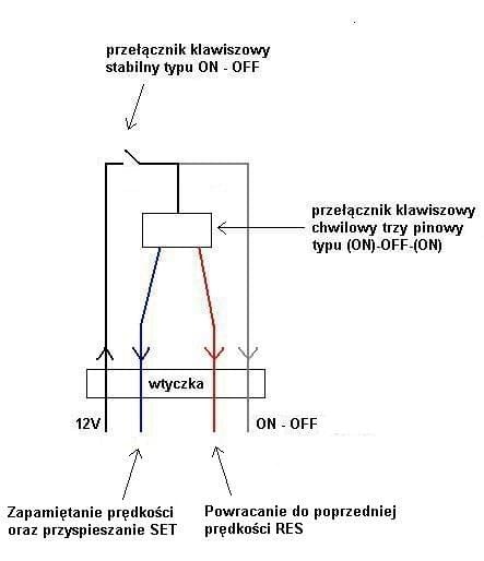 Błędne jest stwierdzenie w opisie z vwgolf.pl że, przycisk RES (czerwony kabel) służy do zwalniania (hamowania).