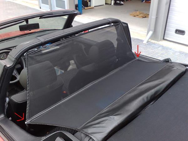 tam gdzie strzałki są paski parciane i idą do dołu tylnej kanapy . z kolei u dołu są przykręcone do tych śrubek co trzymają tylne siedzisko. ( gdzieś mi się szwendają te paski bo w swoim tylko to mi zostało po windschocie .)