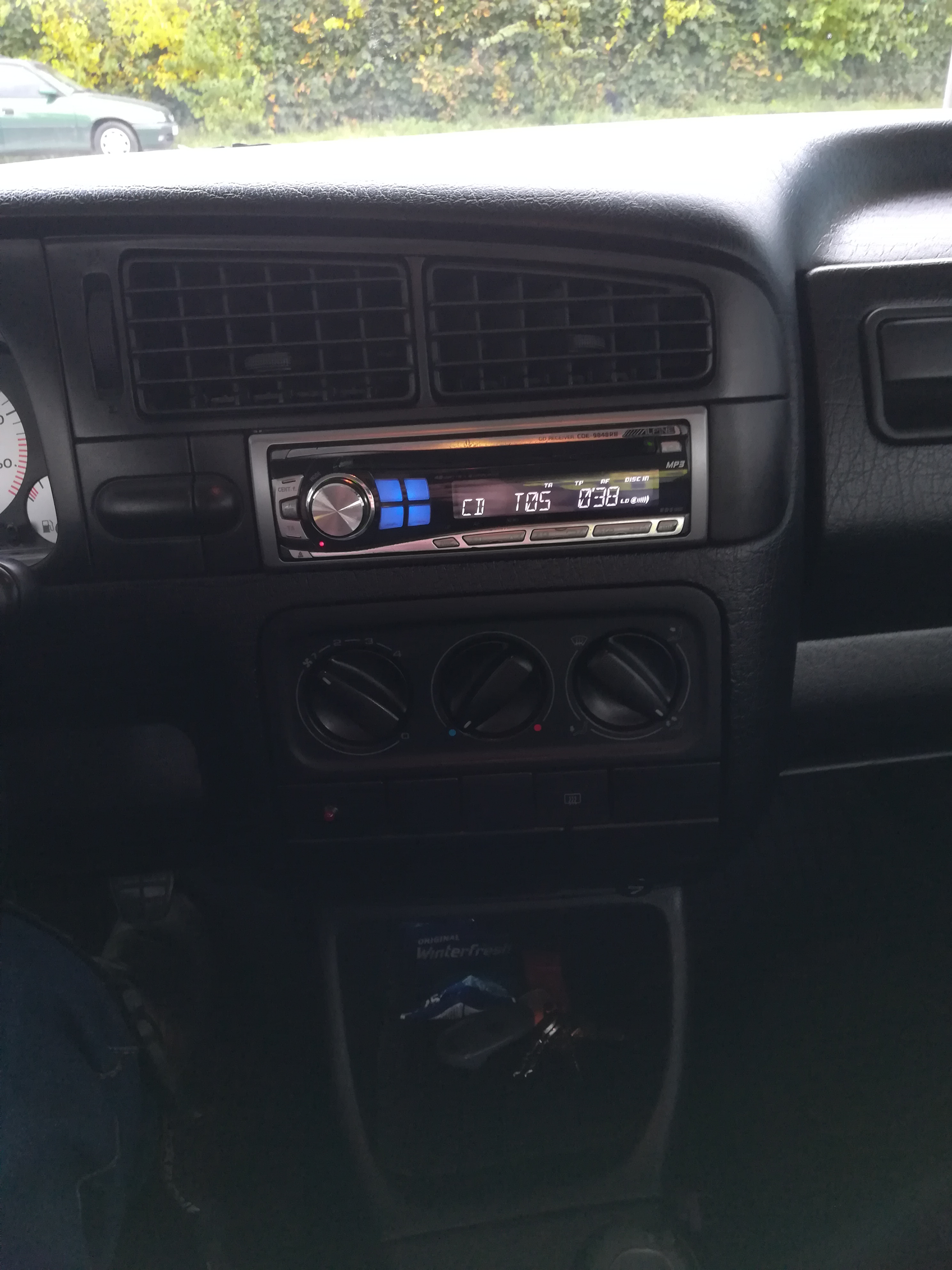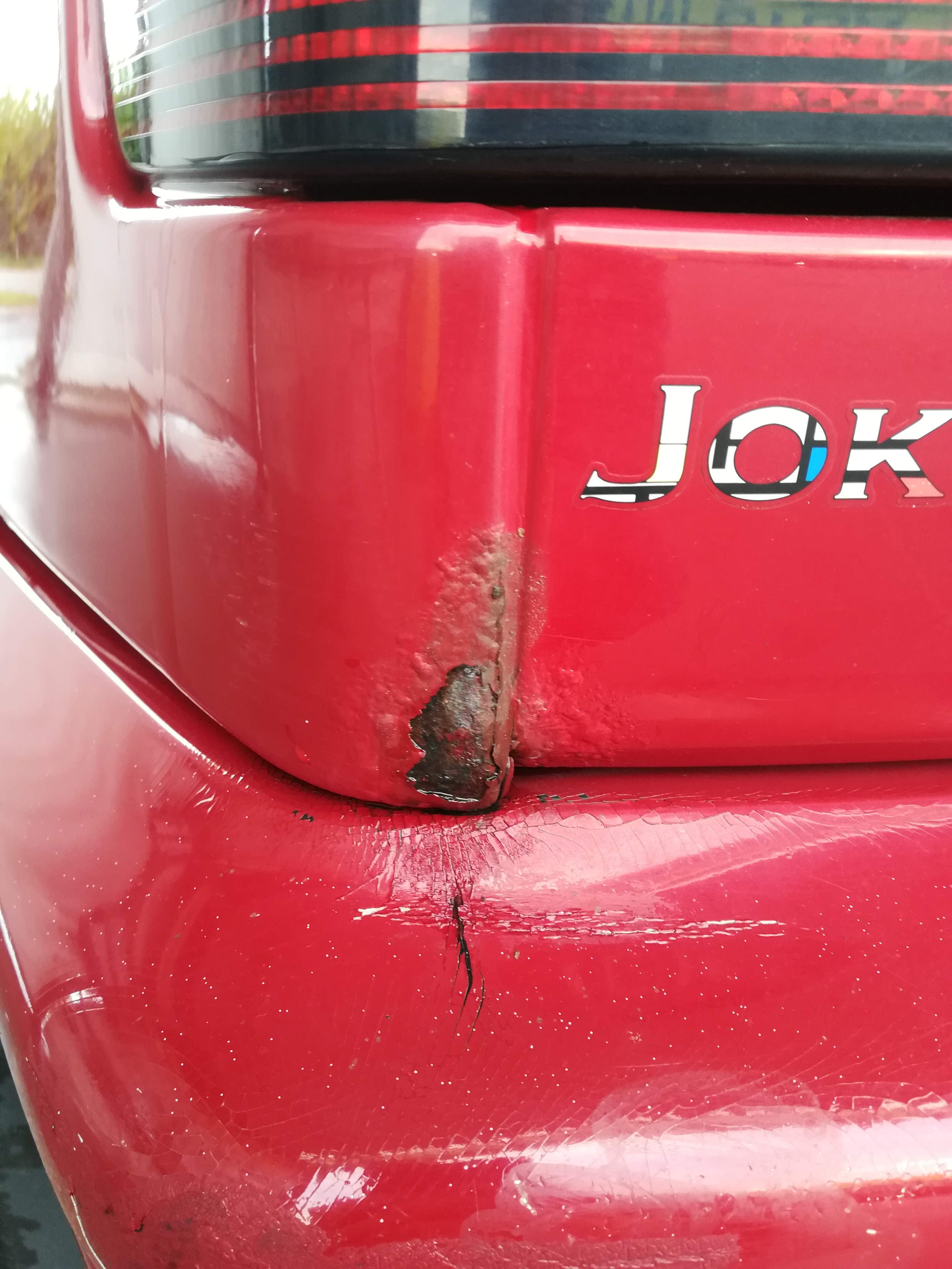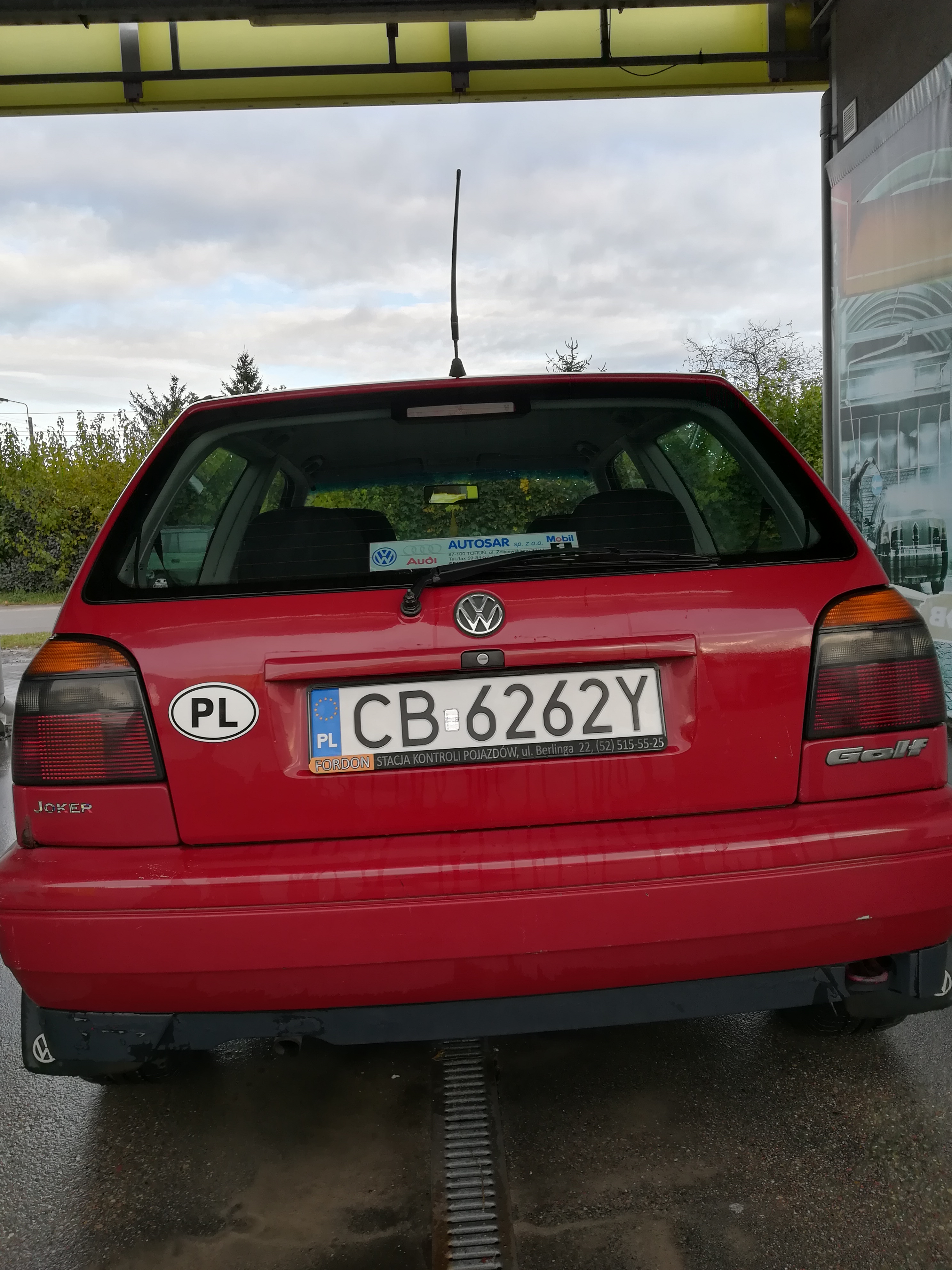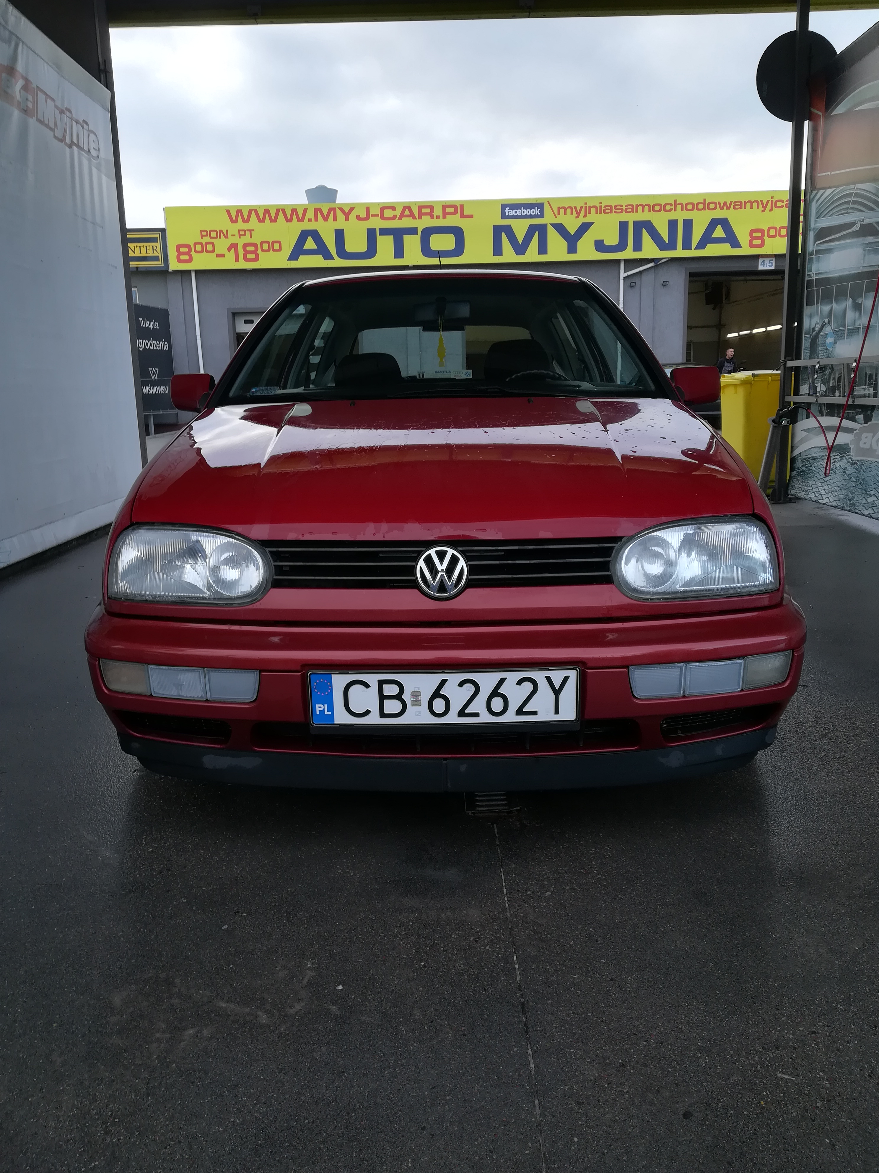 VW Golf 3 z roku 1996 w wersji Joker. Silniczek nieduży,bo 1.6 8V 101km w benzynie. Samochód zakupiony w toruńskim salonie. Przebieg to jedyne 80 tysięcy kilometrów, oczywiście dokumentacja i faktury są na stanie. Stan mechaniczny wzorowy, gorzej z blacharką. Samochód stał parę ładnych lat w garażu (zdjęcia dorzucę jeszcze dzisiaj). Jeśli chodzi o wnętrze to podsufitka lekko uszkodzona (ze 2-3 małe wgniotki),skórzana kierownia w stanie średnim (widoczne obdarcia zew. warstwy) i z bardziej widocznych uszkodzeń to jedynie gałka zmiany biegów wygląda jakby jej ktoś nigdy z reki nie wypuszczał (skóra obdarta). Fotele i reszta wnętrza w stanie wręcz salonowym. Z większych uszkodzeń blacharskich i innych wad: lekko wgnieciona maska (podobno poprzedni właściciel źle ocenił odległość od ściany garażu), zmatowiały lewy błotnik, nieoryginalny przedni zderzak (w kolorze nadwozia) i zmęczony zderzak tylni (znowu jakaś przygoda byłego właściciela). Ogólnie stan powłoki lakierniczej oceniam na średni. Z wyposażenia mogę wymienić jedynie wspomaganie kierownicy (bieda edition) oraz alufelgi 14'.