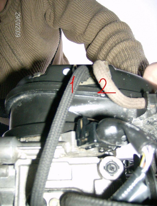 Zmienilem sobie dzisiaj obudowe monowtrysku z tzw "patelni" na obudowe z golfa 3 1.8. Mam teraz kilka pytan odnośnie wezyków podcisnienia. w tej nowej obudowie mam dwa miejsca na wezyki ( zdjecie nr1) a od wtrysku wychodzi tylko jeden ktory byl wpiety w "patelnie" ( zdjecie nr2 ). W ktore miejsce ma byc wpiety ten wezyk ? Jak wpinam w jedno zaznaczone 1 to z 2 wylatuje powietrze, a jak wepne do 2 to z 1 nic nie wylatuje. Dodam ze nie mam puszki z filtrem.