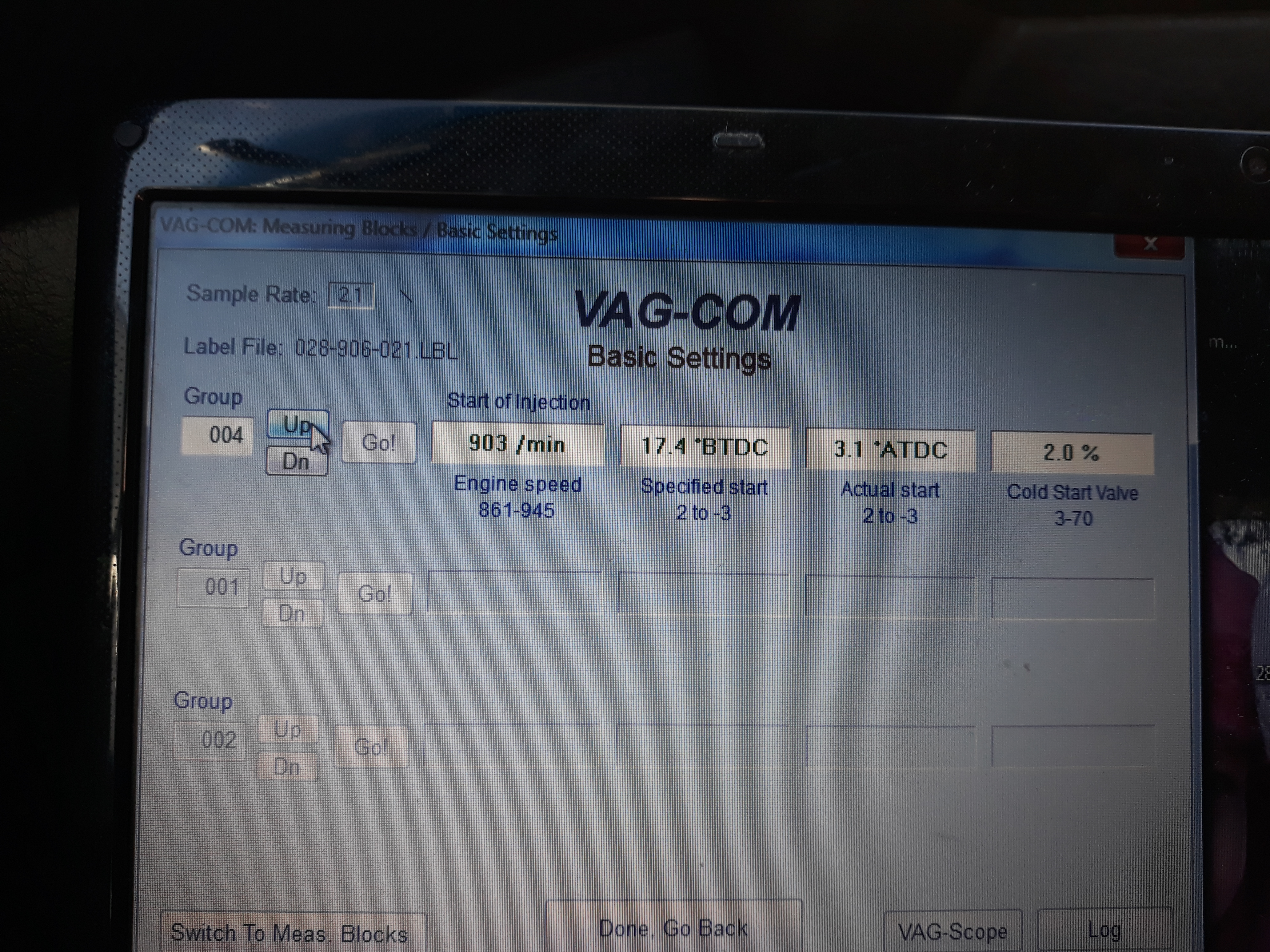 Tematów jest wiele ale nic nie pomaga. problem jest w tym: Po wymianie rozrządu ustawiłem kąt wtrysku wszystko było ok na nowym rozrządzie zrobione ze 4tyś km. z dnia na dzień zaczął się problem z uruchomieniem silnika trzeba kręcić objawy jakby za późny kąt wtrysku łapie łapie a jak załapie chmura dymu. chcąć ustawić kąt wtrysku na vagu niema żadnej reakcji pokazuje 000. jak odpali to ma moc zbiera się ładnie.sprawdzony zaworek 109 (podmieniony na inny) sprawdzałem wtrysk sterujący oporność się zgadza, mierzyłem oporność zaworką kąta wtrysku jest ok, rozrząd sprawdzałem 3 razy wszystko ok. o co tu chodzi. w grupie 004 zastanawia mnie druga wartość i czym to jest spowodowane. czy przepływka ma coś tu wspólnego póki co niemam możliwości zrobienia logów. no i były dwa błędy 01237 i 00522