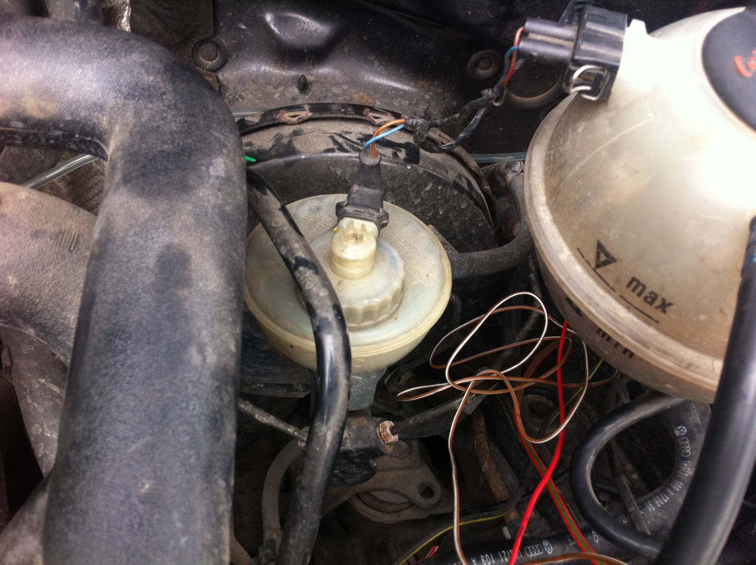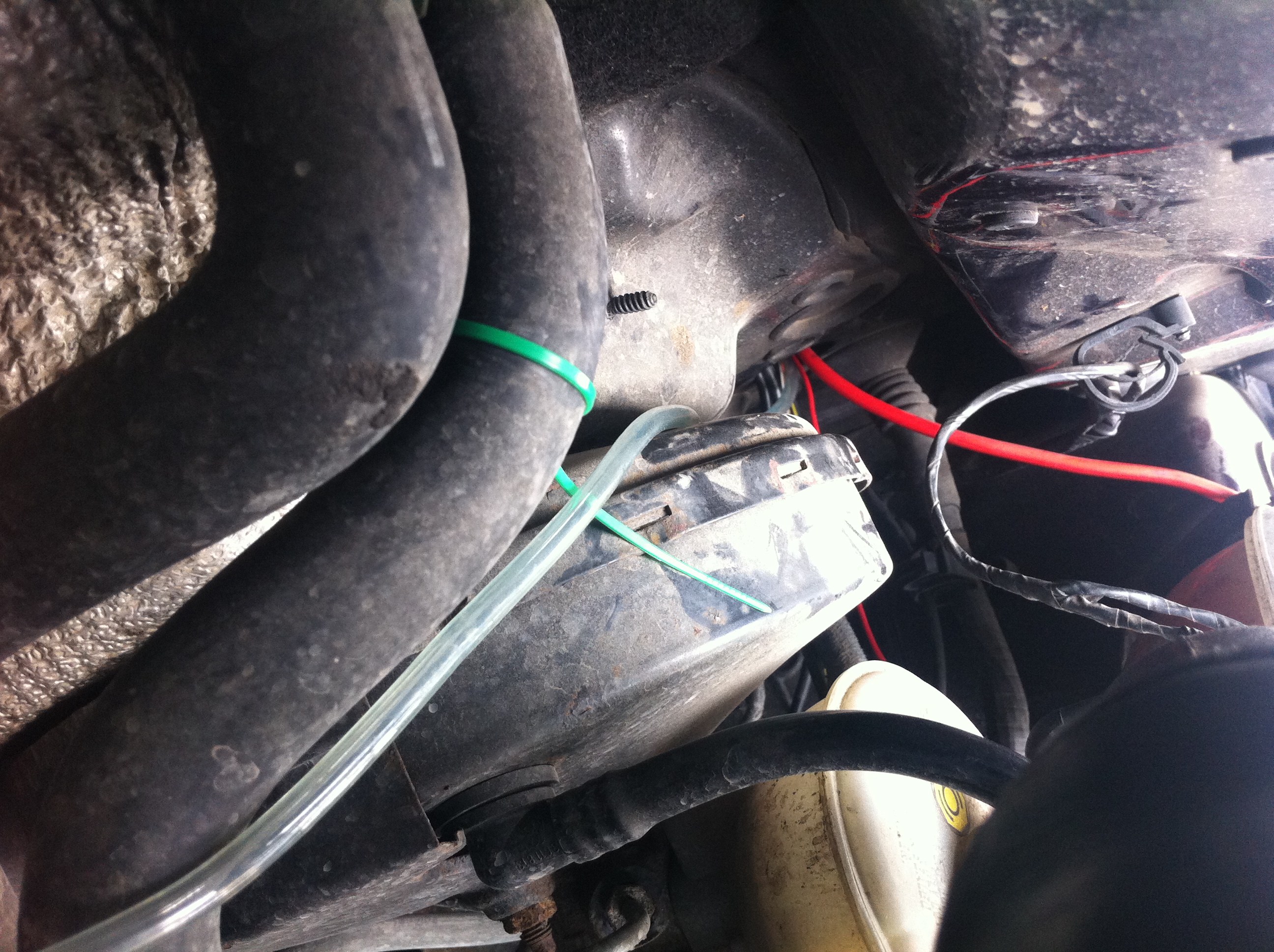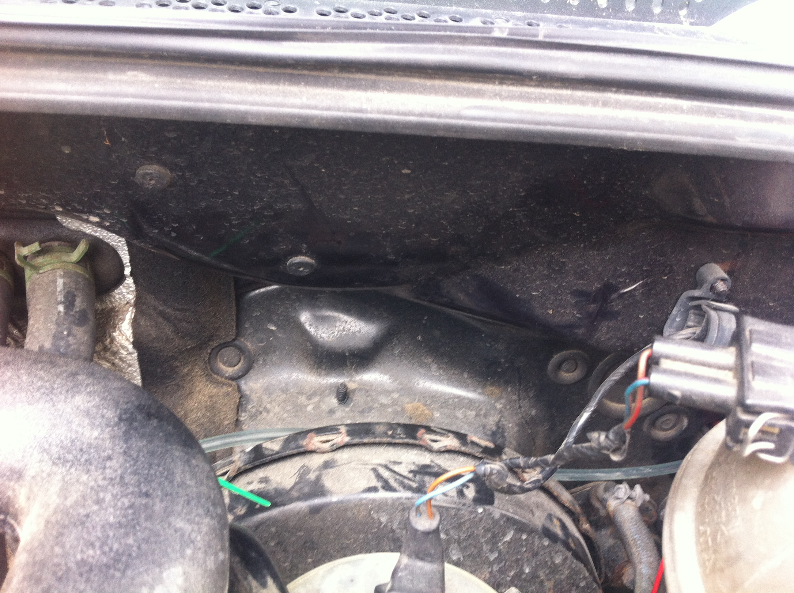 Tak u mnie wyglądają okolice serwa. Pod podszybiem jest mechanizm wycieraczek i komputer ale żadnych uciętych kabli lub luźnych wtyczek nie widziałem