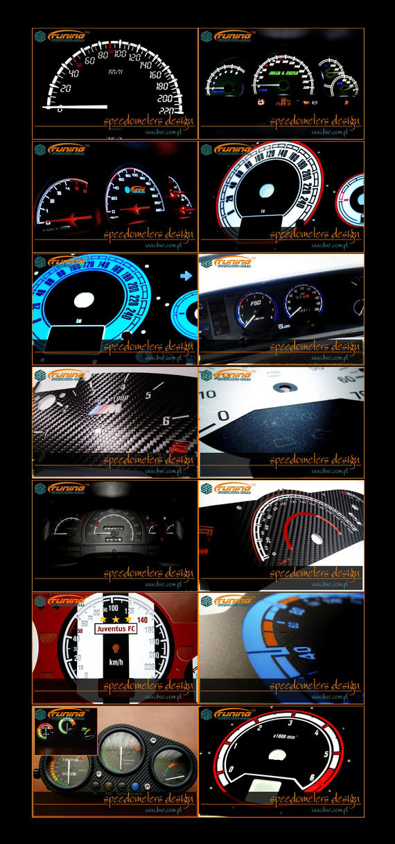 Witam. Chciałbym zaprezentować tarcze zegarów, które wykonuję z plexi 0,5mm oraz folii translucent (rozpraszającej). Poniżej umieszczam wizualizacje z wykonania tarcz jak i projekty.