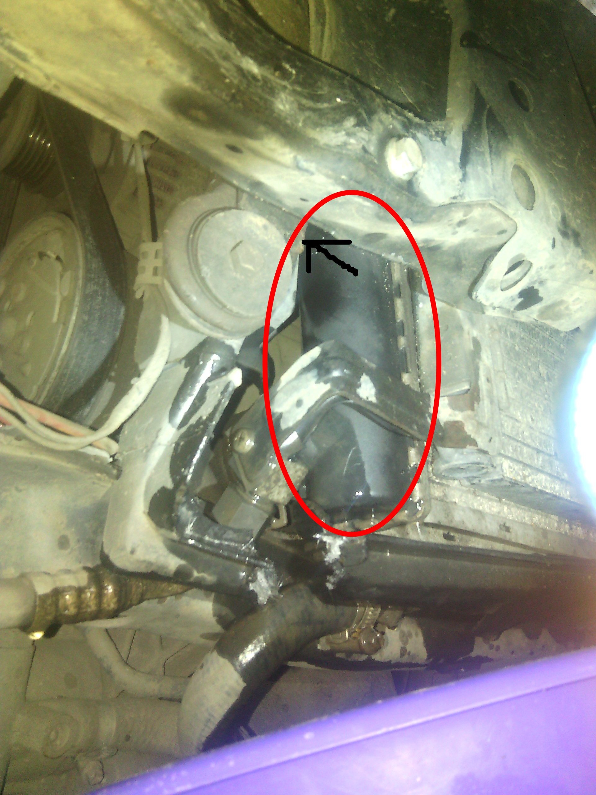 Wyciekła z niego woda, odkręciłam zderzak i tak dalej i znalazłam przyczynę. Woda cieknie z tej 'rurki". Widać jak jest pęknięta.