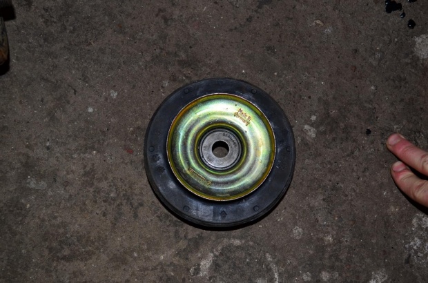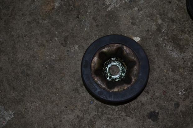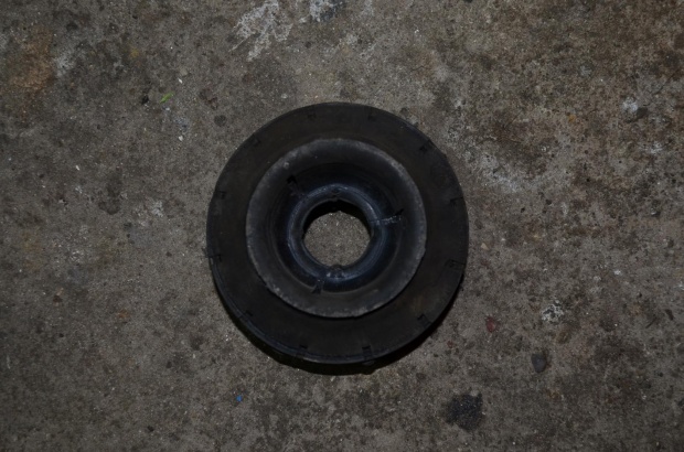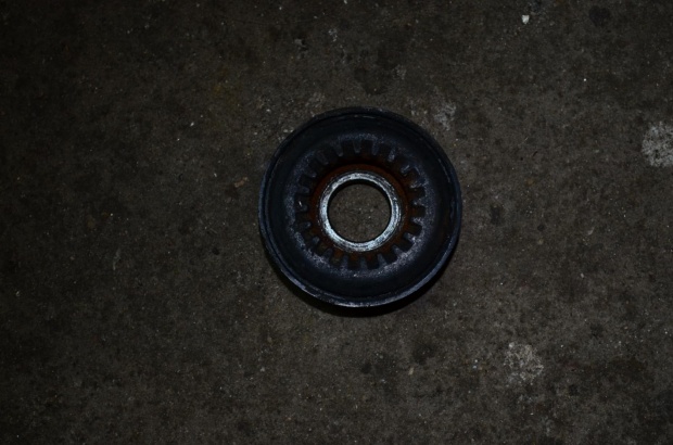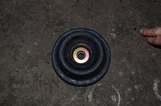 Ma on straszne luzy, ok 3/5 cm sie wysuwa jak podnosilem lewarkiem telepał na wszystkie strony. Kupiłem gume z wtopionym łozyskiem w sklepie mowili , że bedzie pasowac okazało sie że to całkiem co innego wygląda to tak: